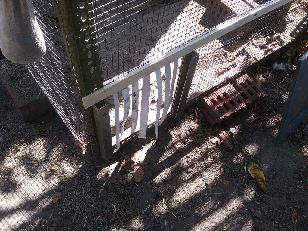Onlangs registreerde m’n wildcamera ook een beest dat verdacht goed op een steenmarter leek. De dag nadien bleek dat er bij één van de buren een kip de kop afgebeten was, terwijl z’n andere kiekens ok waren. De signatuur van een marterachtige bezoeker. Ik besefte dat m’n kiekenskot wel vosbestendig, maar misschien niet marterbesteding was, met die mazen van 5 x 10 cm. Zowel vossen als die marter zijn gefotografeerd op amper 10 à 15 meter van m’n kiekenkot. Ik heb nu het hele kot met fijnmaziger gaas afgesloten, en ook de kieren aan het luikje en de toegangsdeur zijn helemaal dichtgemaakt. Zelfs een rat geraakt er niet meer door. Een muis wel, maar dat kan me niet veel schelen.