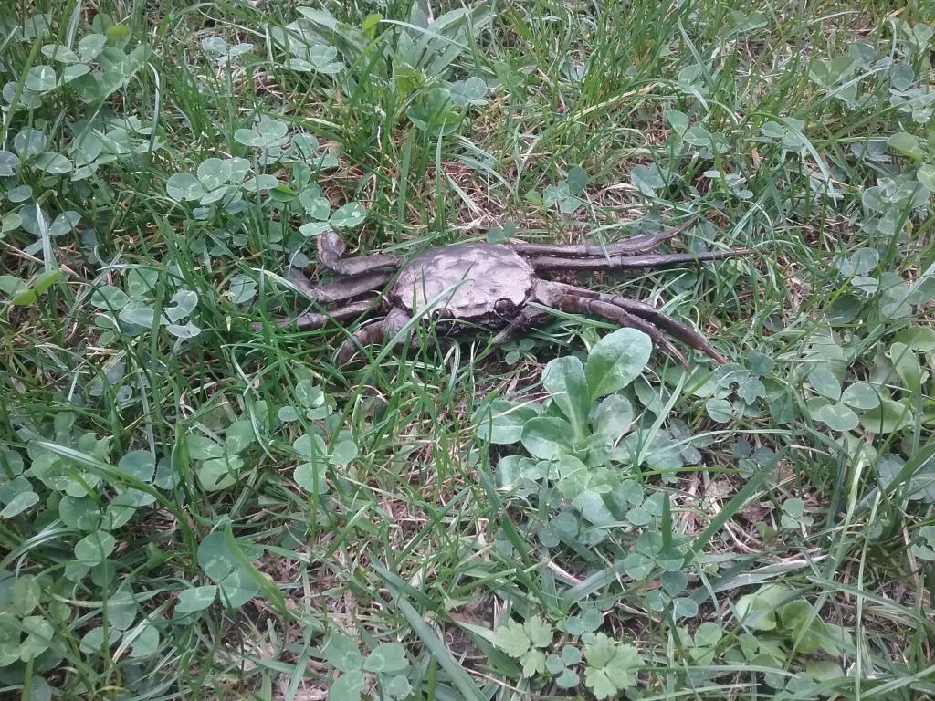 Over biodiversiteit gesproken: soms is het een beetje teveel van het goede, zodanig dat het zelfs helemaal niet goed meer is. Deze week zag ik in het gras iets bruins bewegen. Eerst dacht ik dat het een blad was dat door de wind bewoog, maar het bleek een modderfokking krab te zijn. Een Chinese wolhandkrab, een schadelijke exoot die hier niks te zoeken heeft, en al zeker niet in mijn tuin, biodiversiteit of geen biodiversiteit. Toch een beetje schrikken om dat onverhoeds te zien lopen. Maar dit is niet de eerste keer. Laat op een septemberavond in 2016 zaten we rustig naar televisie te kijken, toen we plots iets aan het schuifraam hoorden krabbelen. M’n eerste idee was dat het de egel was die elke avond z’n ronde deed en op ons terras passeerde. Toen ik, gewapend met een zaklamp, de bron van het krassende geluid ging controleren, schrok ik me een middelgroot ongeluk toen ik de flink uit de kluiten gewassen krab zag, die langs het raam omhoog trachtte te klimmen. Enkele meters verderop ontdekte ik een tweede en kleiner exemplaar. Die moeten ruim een kilometer verderop uit de Ringvaart gekropen zijn, en de ringweg en een drukke snelweg gekruist hebben om tot hier te geraken.