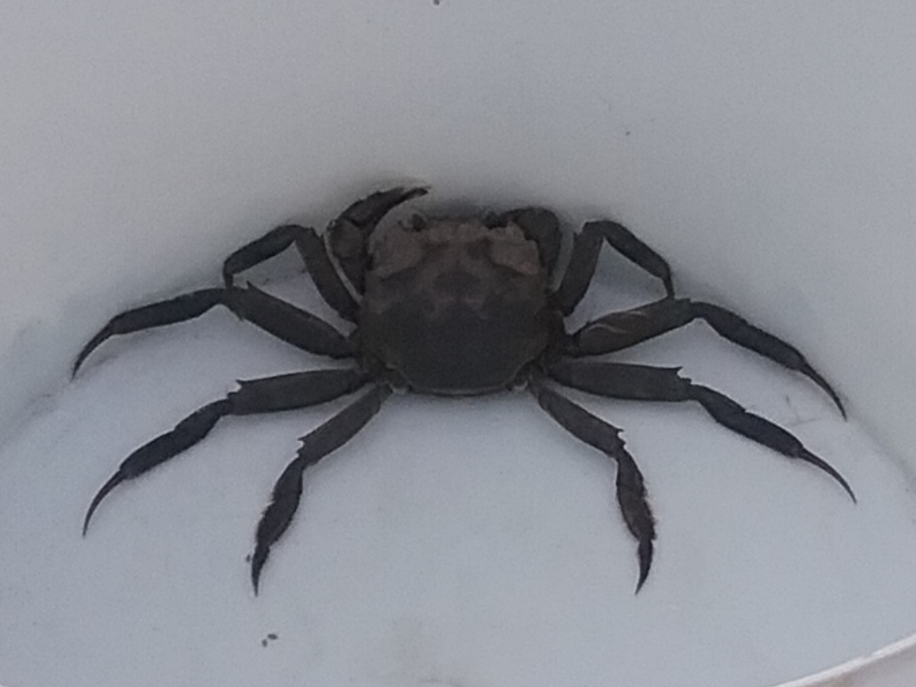 Enfin, nu zitten we hier met een levende krab in een vaatje. Ik heb vandaag toch maar gewoon tomatensoep gemaakt.